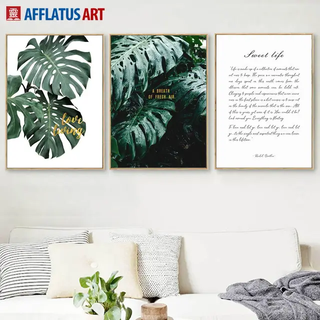 Tropical Green Monstera Leaves Quote Wall Art Canvas Painting Nordic Posters And Prints Wall Pictures For Living Room Wall Decor Painting Calligraphy Aliexpress