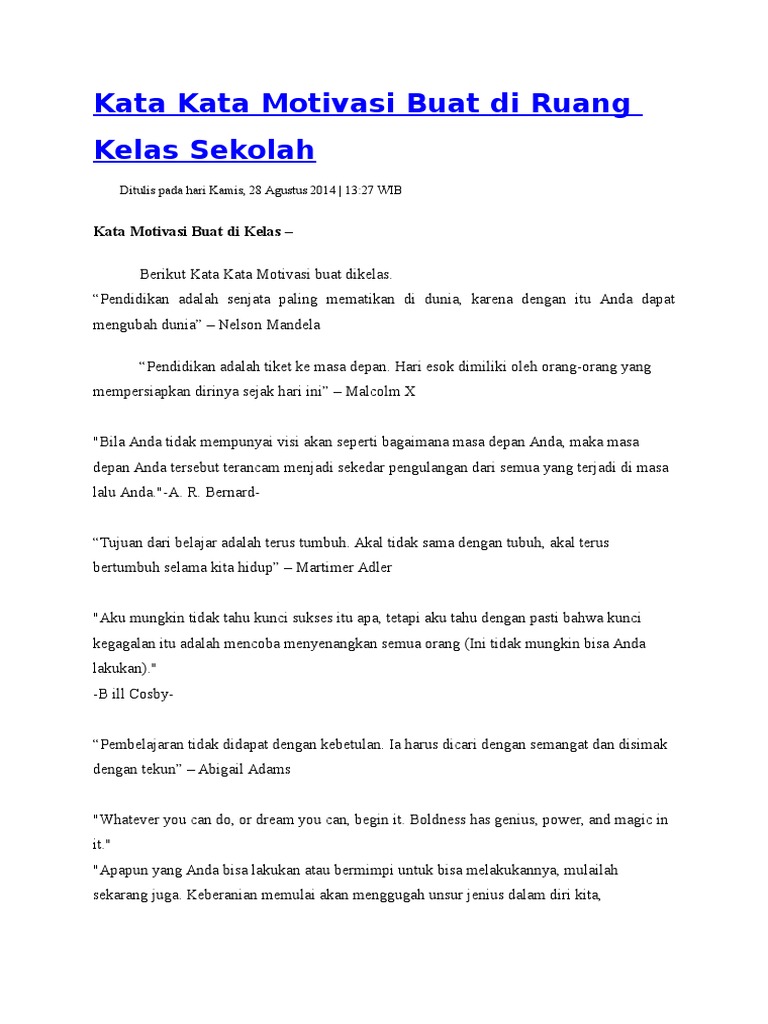Kata Kata Motivasi Buat Di Ruang Kelas Sekolah